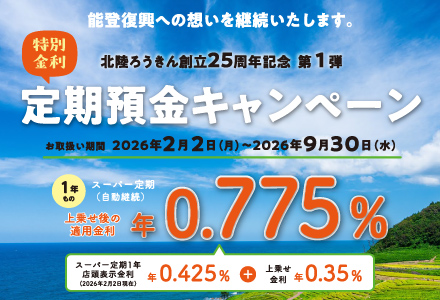- 令和6年能登半島地震被災者支援~<北陸ろうきん>にてご利用中の融資返済が困難なお客様へ~受付期間延長のご案内