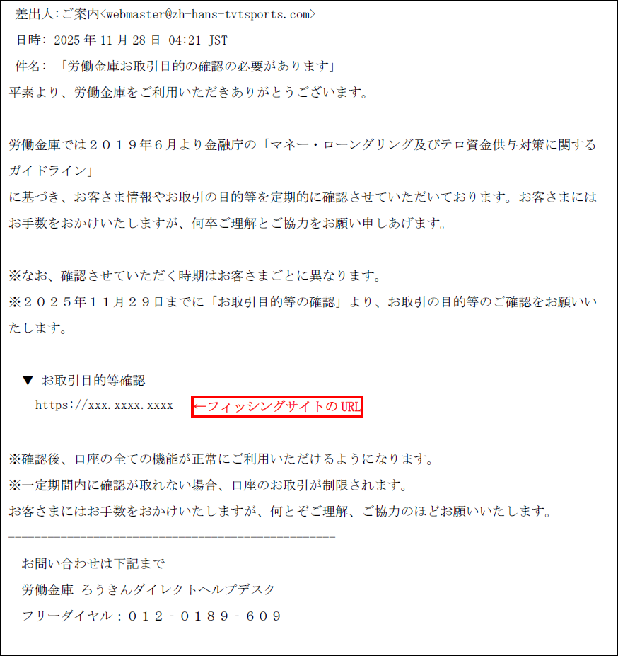 労働金庫を装ったフィッシングサイト・不審メールにご注意ください(2025年11月28日更新)